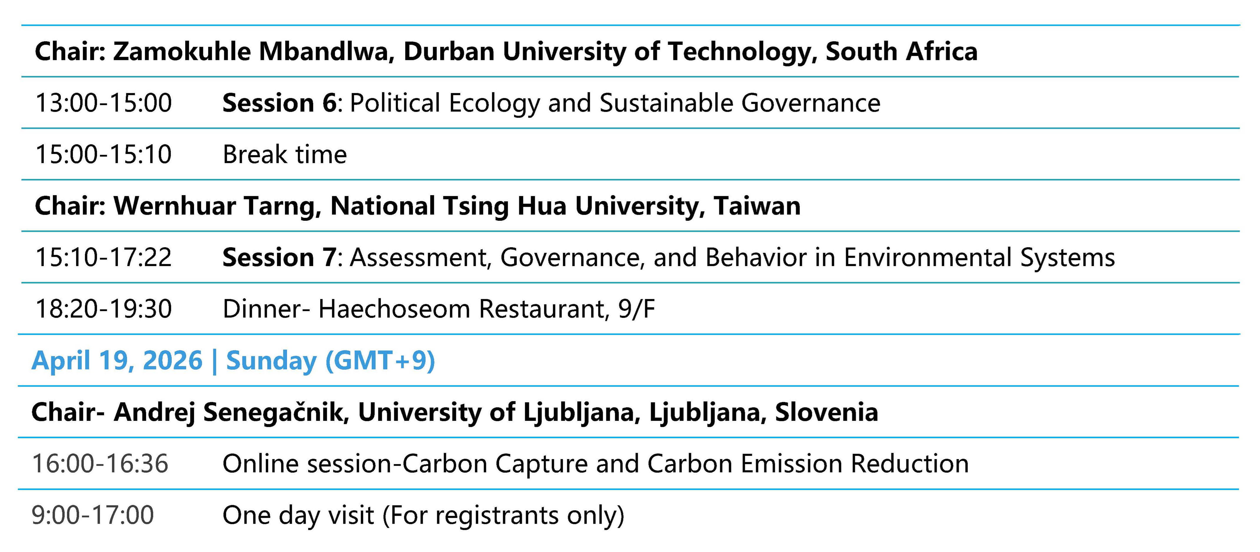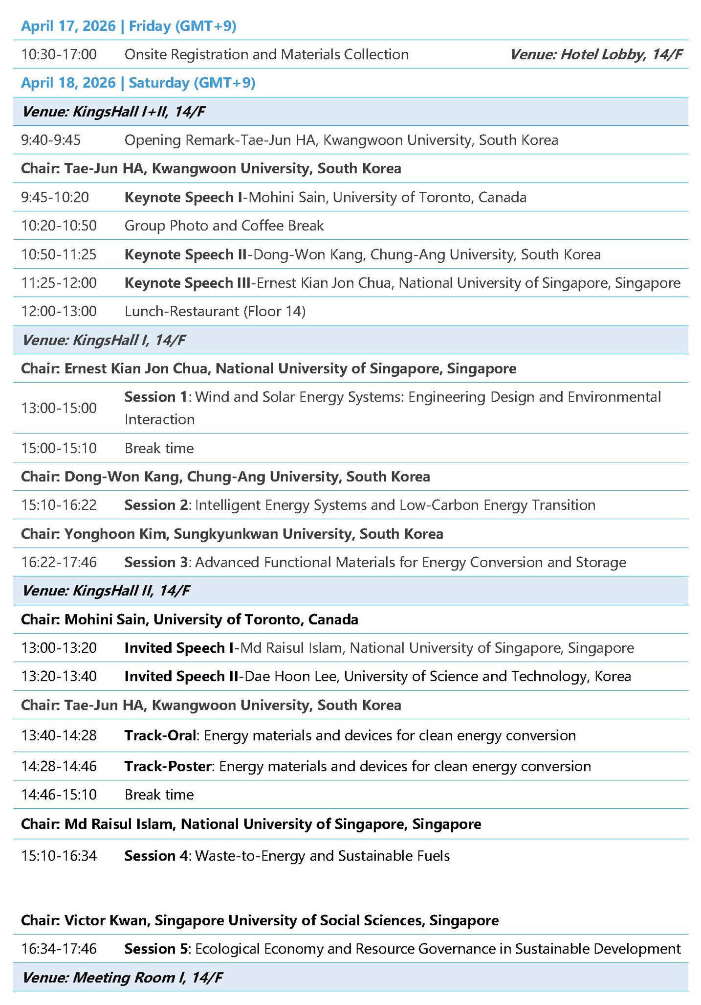 3. Please arrive at the designed room location 10 minutes before the session begins and report to the session chair.